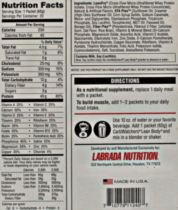 lean body carbwatchers label