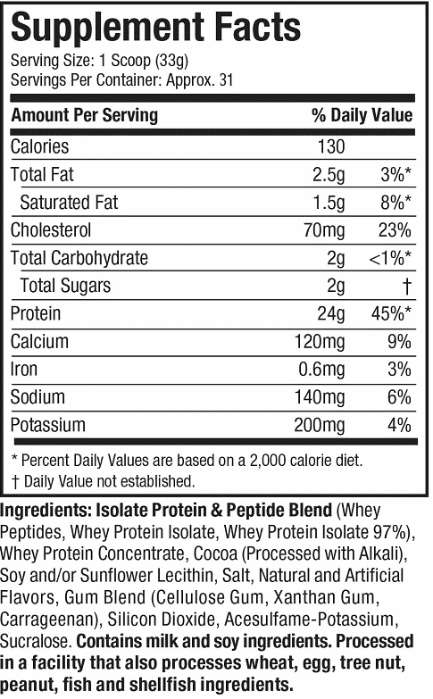 Muscletech Nitro Tech 100% Whey Gold 990g label chocolate
