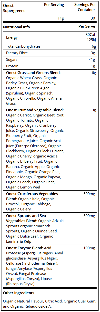 Onest Health Supergreens label