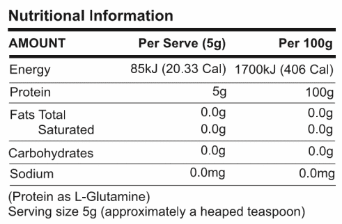 We recommend taking 5g, 1-3 times daily, once in the morning, pre and post workout and before bed. L-Glutamine can be easily mixed with water, juice and other supplements.