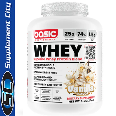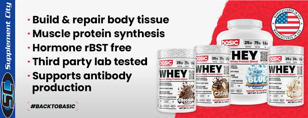 Reach your fitness goals with Basic Supplements Whey Protein Blend, ideal for post-workout recovery. It gives your body the essential nutrients it needs to build muscle, recover quickly, and stay healthy. Our blend is packed with high-quality protein and is easy to digest, making it perfect for anyone who wants to get back to basics with a no-B.S. approach!