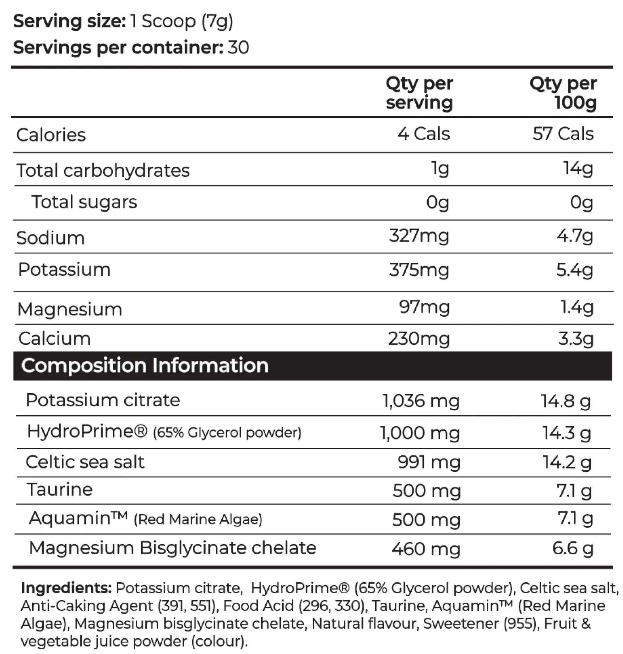 - Targeted support against cramping and fatigue: Taurine + HydroPrime® promote deep cellular hydration and muscle function.