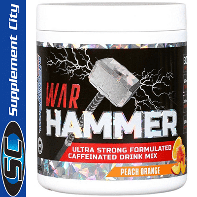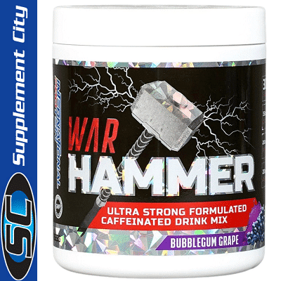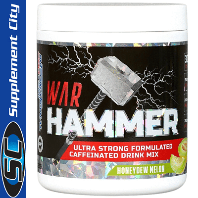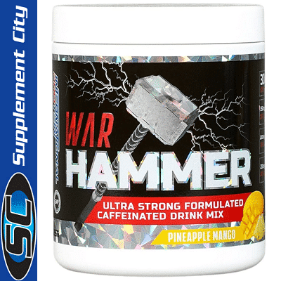 Drop the hammer on fatigue! International Protein War Hammer is all about high stim energy, mega pumps and zoned in focus. Get more out of every minute in the gym with War Hammer’s high caffeine, high performance formulation. A hard hitting, high impact blend of Citruline Malate, Beta Alanine, Tyrosine, Bitter Orange and Caffeine lift your performance to new heights, and Walnut extract, Lotus leaf and Theanine improve cognition and smooth out the intense buzz and let you get to work making gains!