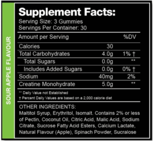 Swoleys Sour Creatine Monohydrate Gummy Bears Label